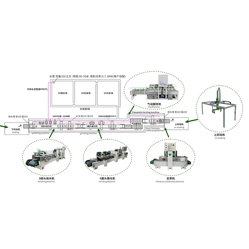 டெர்ராஸோ டைல் பாலிஷிங் மேற்பரப்பு சிகிச்சை இயந்திரம் தன்னியக்க தொடர்ச்சியான செயலாக்கத்தை திறமையாக நிறைவு செய்கிறது டெராஸ்ஸோ ஓடுகள். உயர்-பளபளப்பான கண்ணாடி விளைவு மற்றும் துல்லியமான தட்டையானது தயாரிப்பு தரத்தை கணிசமாக மேம்படுத்துகிறது பெரிய அளவிலான சந்தை தேவைகளின் தேவைகள்.